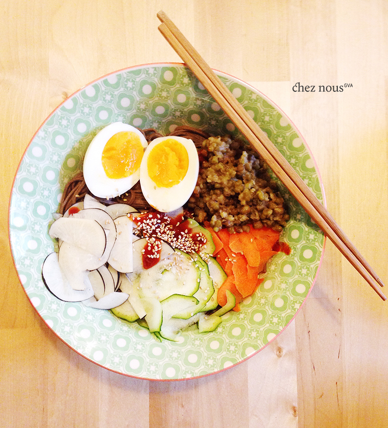 If you are not fond of purely veggie bowls, just top off with grilled or steamed chicken breast or mackarel or salmon slices. More noodle and grain bowls soon!