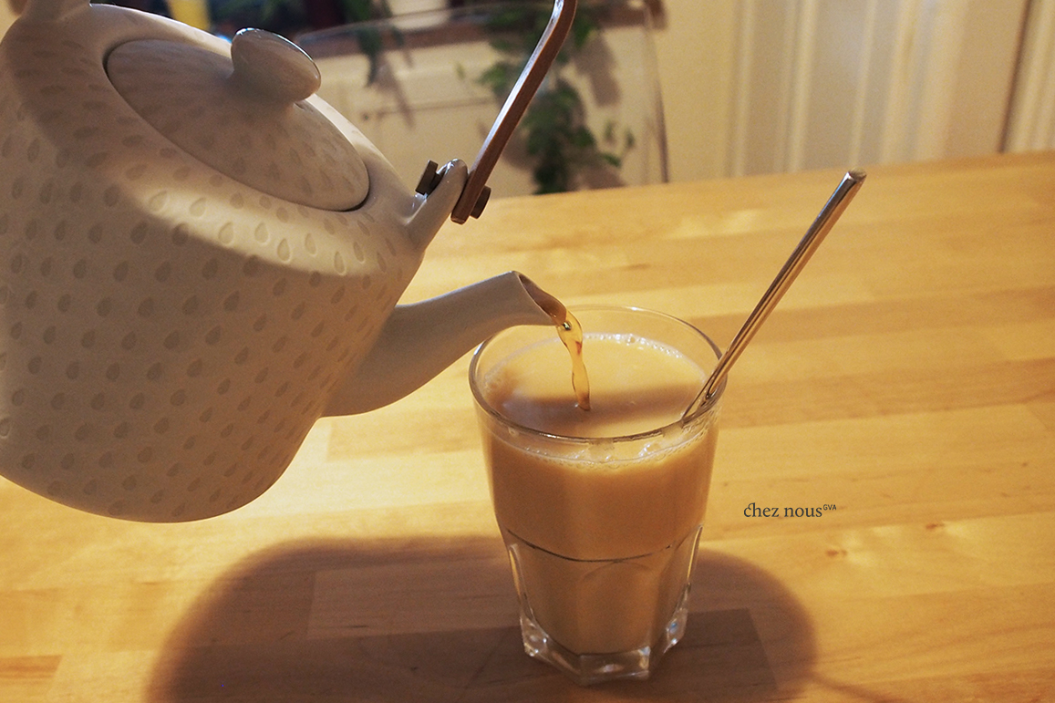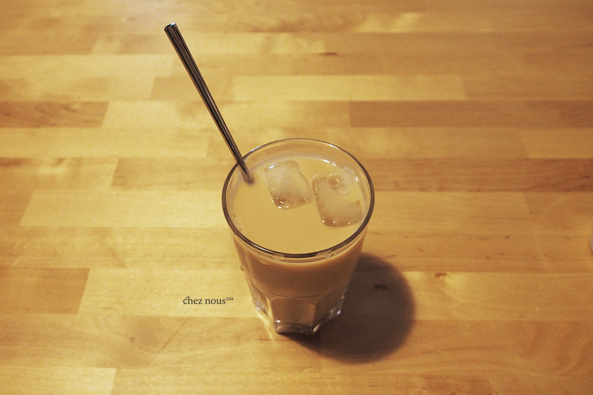 Yesterday’s free & hot day (free because it was a holiday, and hot because, well, 38°!) called for a homemade milk tea. Traditional Asian milk tea is one of my favorites, especially during hot days. It’s so refreshing, yet rich and creamy. Gives me that jolt of caffeine with that sweet tooth satisfaction. It usually varies in tea and milk proportions, but it normally is very sweet. I love the condensed milk component – which is good for the taste buds but not so much for the rest of the body. So the chez nous kitchen tried out a healthier and lighter version.